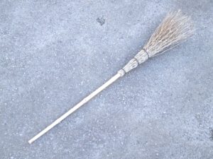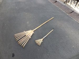 竹の細枝を束ね4~5cmの太さの1m30程の枝に針金で縛りつけたもの。細枝が回転してしまうと使用できないので串枝が挿してある。近年中国で竹の枯死が相次ぎ、品質が悪くなった。枯れる前の青枝が望ましい。適当な腰の強さを求めて、新品状態でビニール紐で縛り補強して使用する。