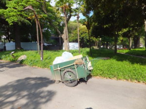 リヤカーは公園内のごみ回収に使用する。本来は自転車の後ろに接続し使用した。金属部のみで販売され木部は別注か自作となる。近年はゴムタイヤ部、リム部、チューブも入手困難となっている。