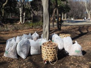 ごみ袋は東京都指定の炭酸カルシュウム含有のごみ袋を回収用にする。内容量によって41リットル・70リットル・90リットルがある。他に1m四方の「とん袋」もある。