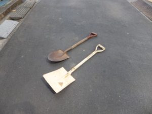 スコップは砂場の砂の掘り起こし、入れ替えに使用する、先の尖った「剣先スコップ」と平らな面にある砂を掬い取る「角スコ」がある。近年は都心部も降雪対策で雪かきに使用する。