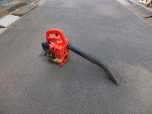 ブロアーは噴き出す風の力で落葉を一方に集める機械です。2サイクル式、4サイクル式の別があり、ガソリン式の他に電動式もある。ガソリンの混合比率が25:1や50:1のもの。肩掛け式以外に背負子式のものがある。