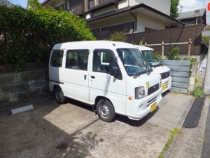 公園内の収集した落葉やごみを移動するために平ボデーの軽トラックや軽バン、2トントラック、2トンダンプカー、軽ダンプカー、2トンパワーゲイト車、パッカー車、作業員移動車があります。